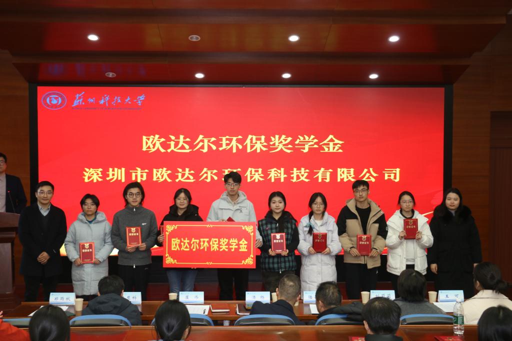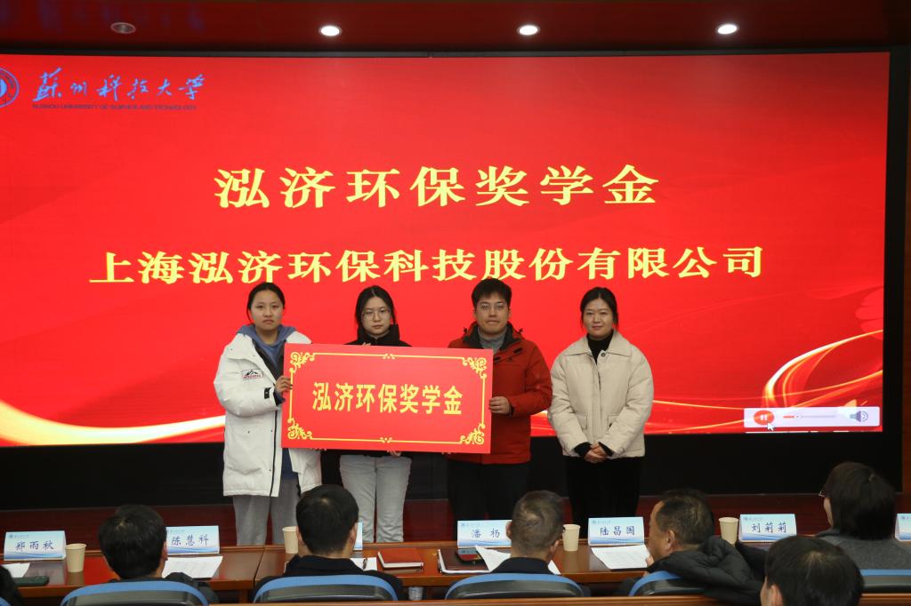 举办2025年度企业奖助学金颁奖仪式。苏州零碳时代科技有限公司董事长陆昌国,苏州市东方环境工程有限公司副总经理陈慧科,苏州格力美特实验室科技发展有限公司财务总监刘莉莉,深圳市欧达尔环保科技有限公司行政人事部门郑雨秋,学校学生工作处副处长崔炜,学生工作处学生资助管理中心主任王可,环境学院党委书记潘杨,学院党委副书记顾银君,学院副院长钱飞跃和百余名学生代表出席了活动。