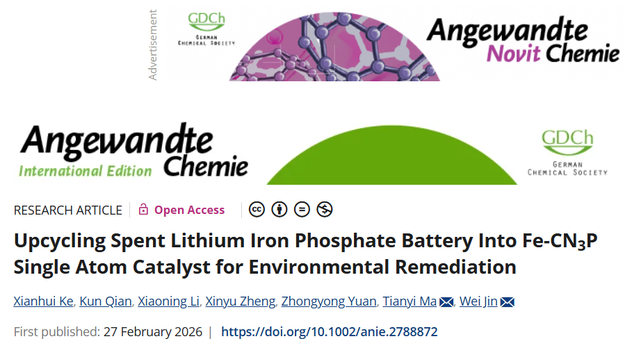 金伟教授的最新研究成果刊登在化学/环境类顶级学术期刊、Nature Index期刊《Angewandte Chemie International Edition》上,研究成果题目为“Upcycling Spent Lithium Iron Phosphate Battery Into Fe-CN3P Single Atom Catalyst for Environmental Remediation”。 小奶猫直播